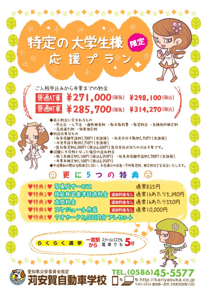 金城学院大学生様限定 夏休み企画!【苅安賀自動車学校】